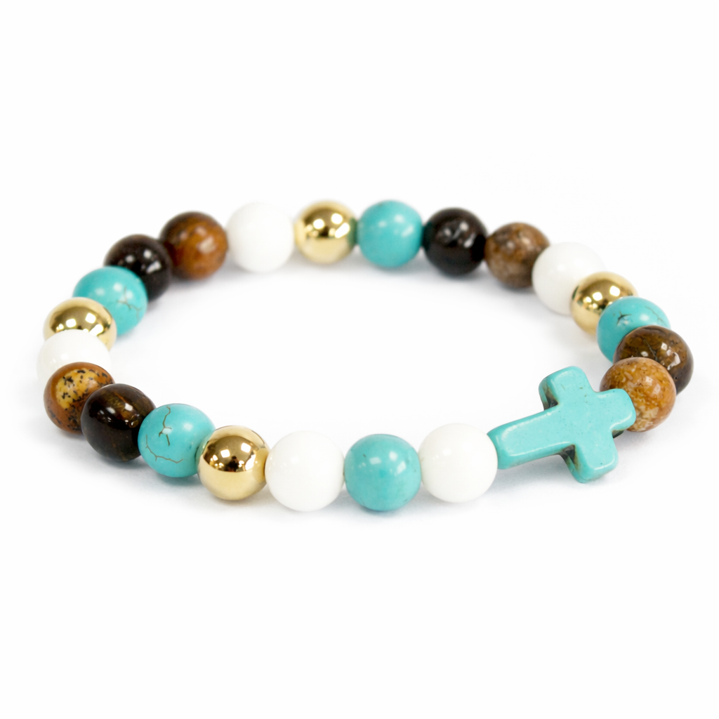 Keskmes olev türkiisrist ✝️ lisab sümboolse “ankru” — meenutus, et sinu energia on sinu enda kätes.
